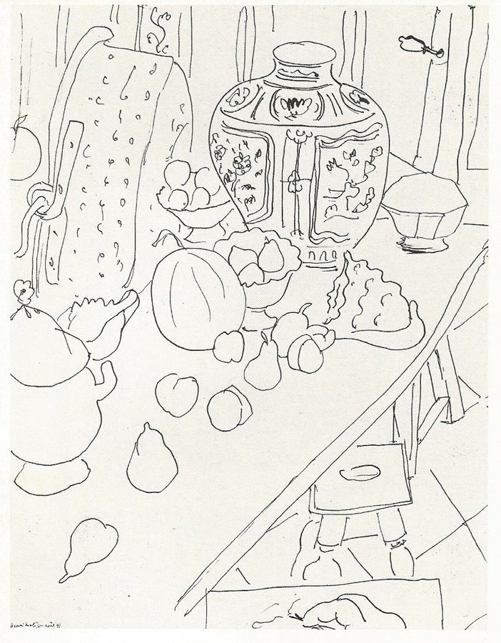 I like Matisse’s emphasis on drawing studies until he “knows the lace off by heart”, i.e. has a deep understanding of it. In fact, once the stage of knowing the object off “by heart” is reached, the artist is capable of making a simple drawing from memory. In conveying the essence of an object, memory is of the utmost importance. But I shall come back to this point in a future article.