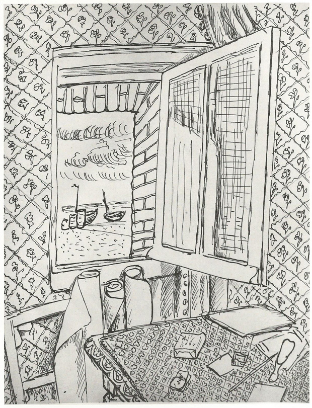 In making this drawing, see if you can make sense of your window image without adding any tonal shading whatsoever. If you do decide to add a little tone (and you may well do if there is bright light streaming through the window) then use it sparingly as Matisse did in “Open Window at Etratat”. Instead of resorting to shading techniques, try adjusting your line thickness or changing the density of your patterned marks to suggest tone.