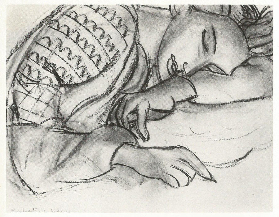 Above: Henri Matisse “Young woman sleeping in a Rumanian blouse”, 1939, charcoal on paper, 37x47cm