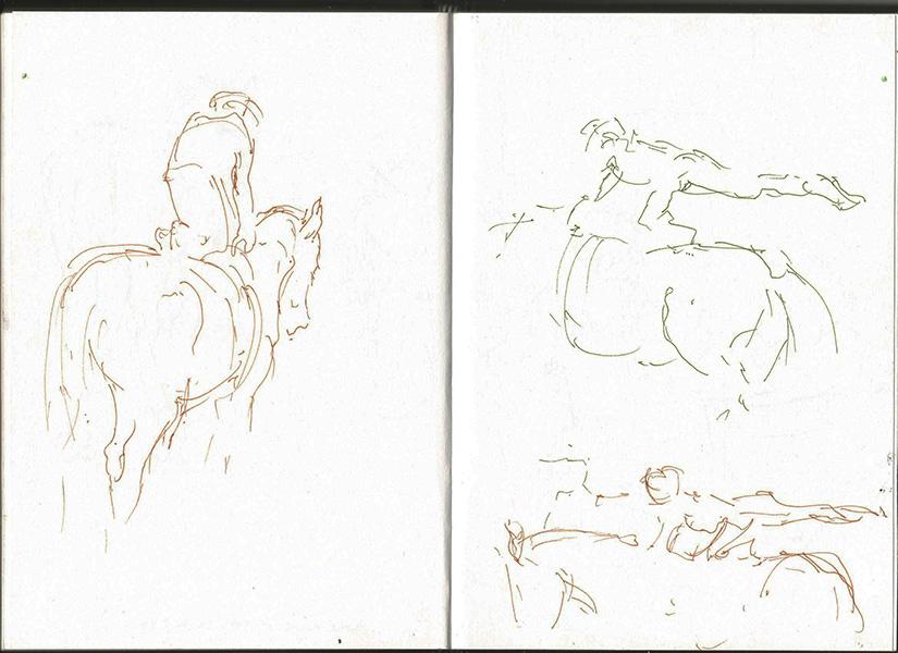 Above: Some of my sketchbook attempts to capture poses of equestrian vaulters in action.