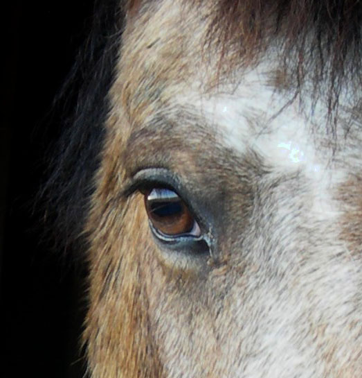 I have not covered “cheeky” eye expression, but imagine that this involves a bright highlight in the eye, and perhaps a look off to one side. When this occurs, I usually seem to be sitting on the horse and so don’t manage to get a photo! If anyone has photos of this or other expressions then do please get in touch.