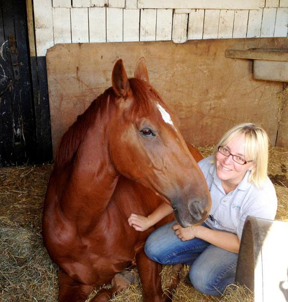 Now I shall stray further from horsemanship and towards pictorial fantasy. Take a look at the beautiful horse, Romeo below, with his owner. They have trained and competed together, and some of this must be hard work, but here they are sharing a quiet moment in the stable. Romeo is so relaxed and happy that he hasn’t even stood up. There is something on this horse’s face that I read as a “smile”, and it has something to do with the almond shape of the eye: