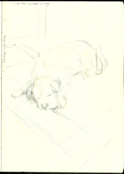 The brief sketch on the left page, below, merely hints at the terrier’s outline. He then moved position, but this was enough to give plenty of information about how he was sitting: