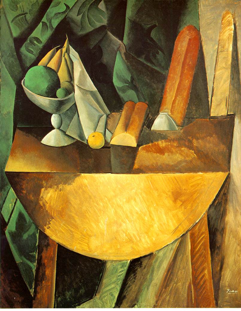 Above: Pablo Picasso “Bread and Fruit Dish on a Table”, 1909