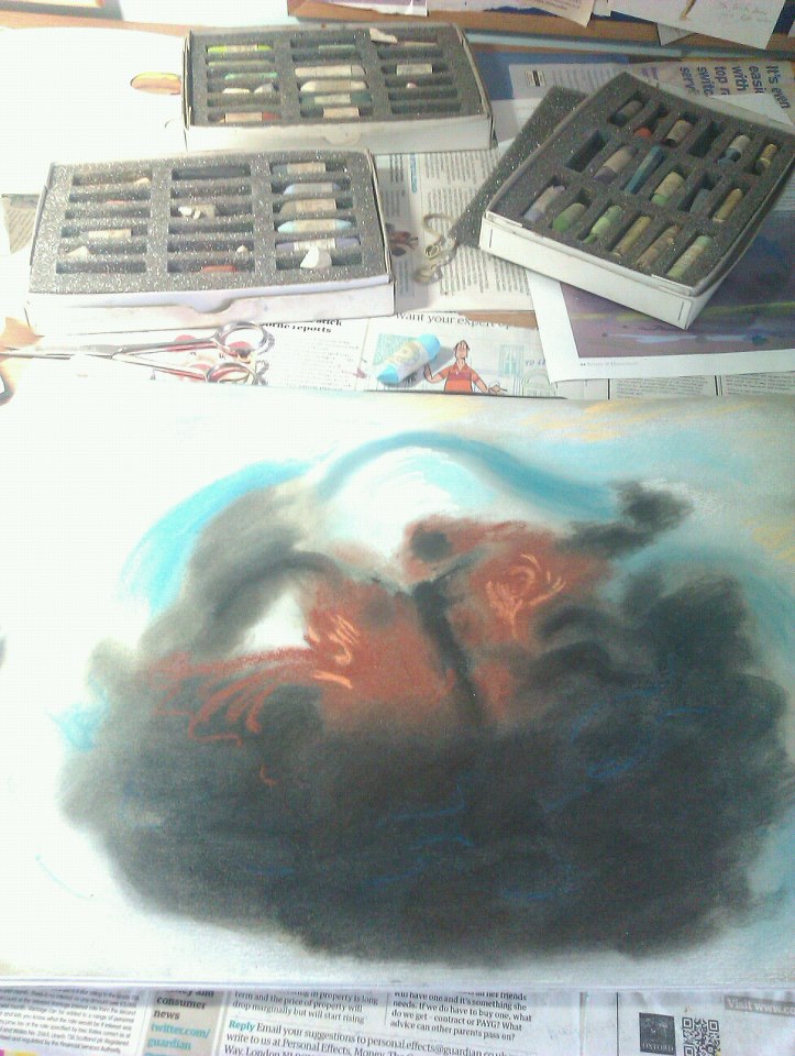 None of these are completely finished, glazed or framed, and the final one is still rather at the sketch stage. I have decided to write something about them in this blog, even at this unfinished stage, to share some of the self-questioning behind the images.