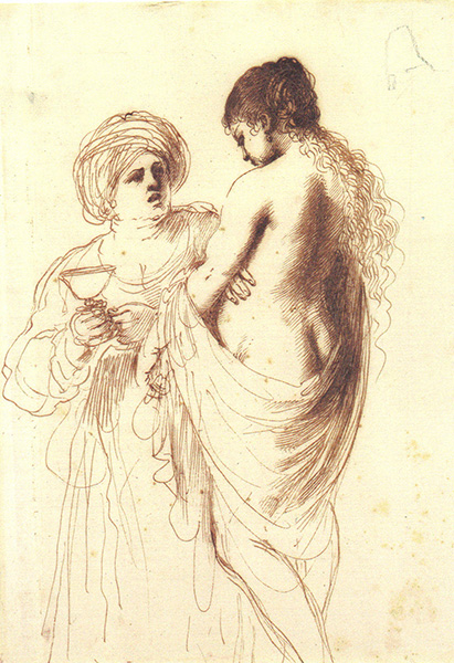 Notice also how the cross-hatching goes in many directions. Some lines curve over the surface of the figure’s form. Others form quite regular grids and meshes.