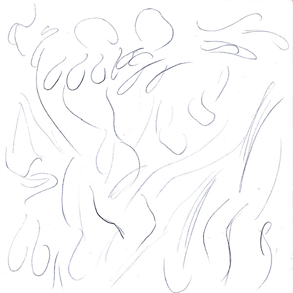 - Notice how many of the pencil cross-hatching lines curve around the bodies of the figures. This helps them to look more rounded and three-dimensional.