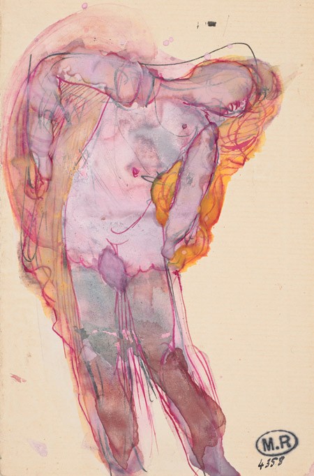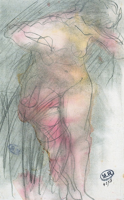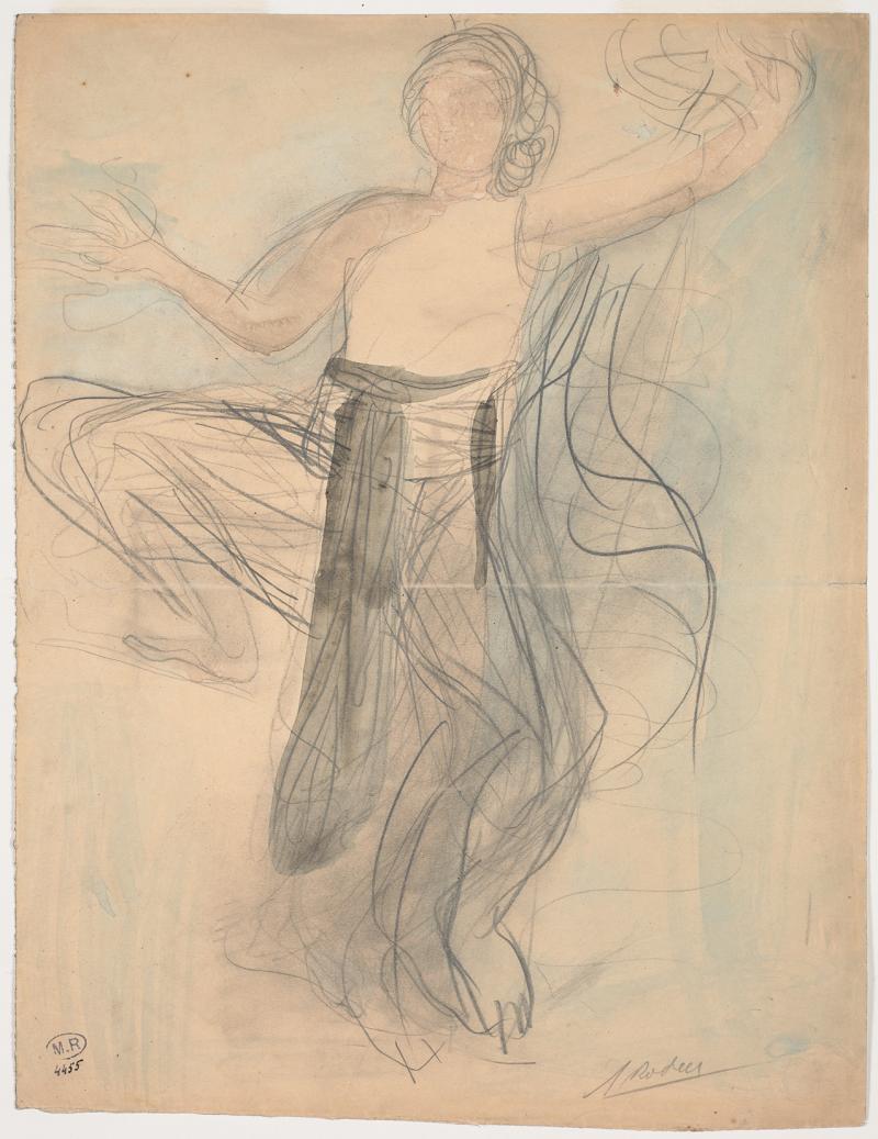 Above: Auguste Rodin “Woman with Swirling Veils”, c.1890, graphite, pen, red and brown ink and watercolour gouache, 17.5x11cm