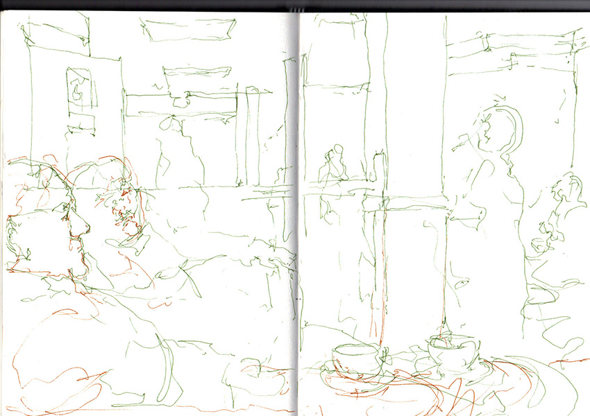 Above: Picasso, detail from page of a sketchbook, 1931