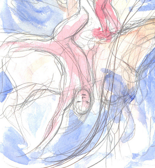 So, how should one draw or paint a buried body? My strongest visual memories of him are close to the oil sketches that I had made earlier this year. In the painting, above, I had used the rather endearing image of him curled and resting, as shown below: