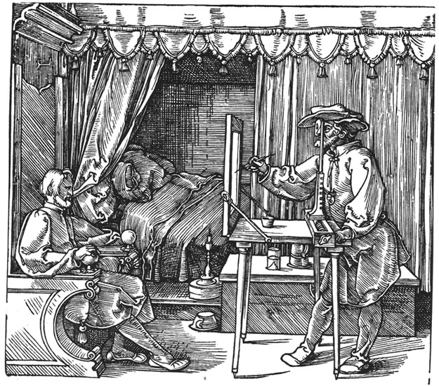 Above: Albrecht Durer “An artist drawing a seated man”, c.1525