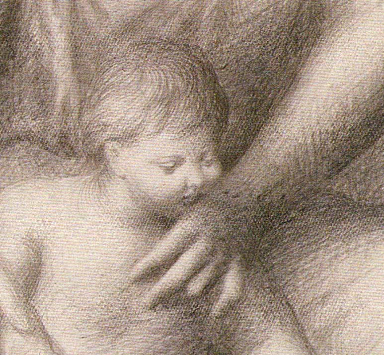 Above: Pablo Picasso, detail from pencil drawing of a mother and child. (Scroll up for full image)