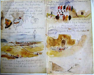 We shall look at pages from famous travel journals including that of Delacroix’s visit to Morocco (above). I shall also have my own holiday sketches to share with you, and copies of other contemporary artists’ travel sketches.